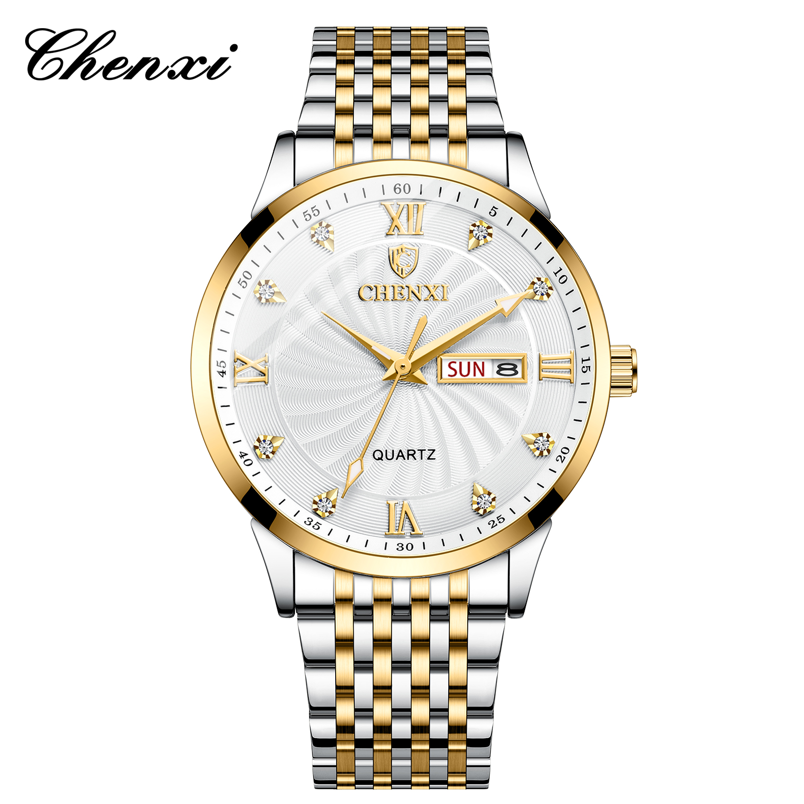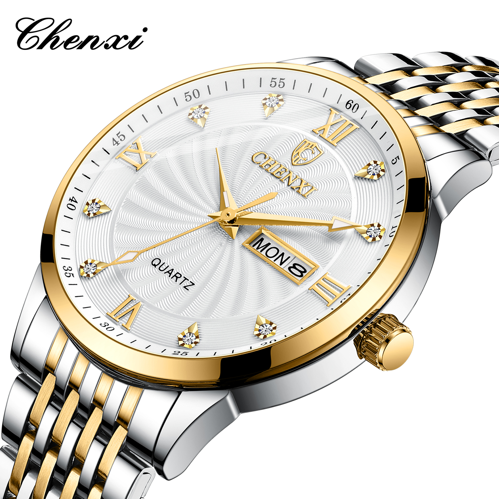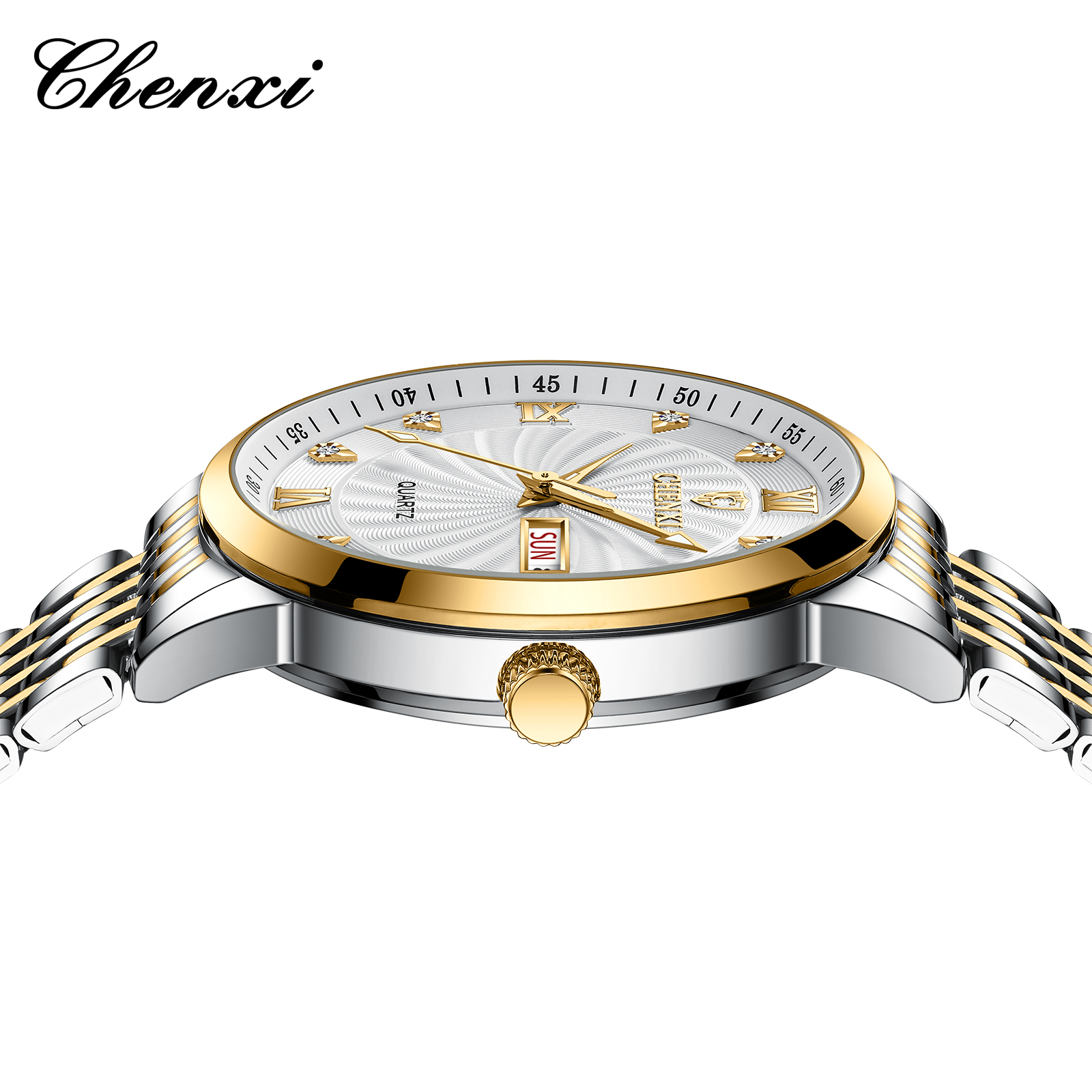 CHENXI Luxury Golden Couple Watch Set – স্টাইলিশ ওয়াটারপ্রুফ লাক্সারি কাপল ঘড়ি (Code: W1)